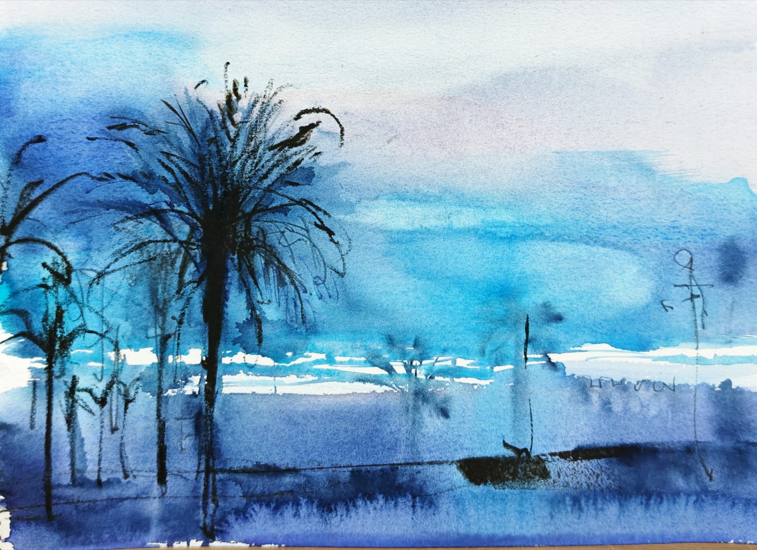 「ニースの夜明け」A4/BFKリーブ紙に透明水彩「パリのスケッチ」A4/BFKリーブ紙に透明水彩
